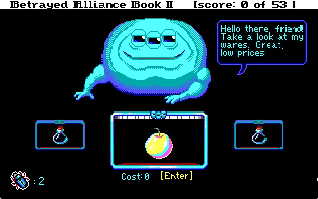 If you haven’t yet joined the Slattstudio Discord, I’d love to have you out to come and chat. It could be about Betrayed Alliance, but it could also be about Space Quest or Peasant’s Quest or modern games like The Crimson Diamond. Okay, you could even talk about non-EGA-palette games (if you have to!)