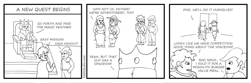 You can also support on patreon and if you’re in the $3 tier or higher, you’ll get a new monthly comic. I’m starting a new continuing series where classic Sierra characters will be going on a hunt for a magical feather.
